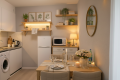 Un appartement de 32 m², organisé avec soin pour les séjours curistes de plusieurs semaines : clair, fluide, facile à vivre au quotidien.