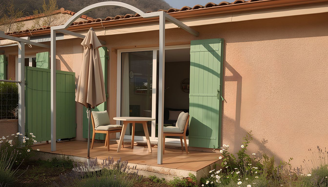 Un espace bucolique, calme et fleuri, pour profiter de l’extérieur en toute simplicité.